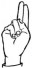 На ћирилици написано ПЕТРА ДАНГИЋ састоји се из 11 слова [?]. Исписано ћириличном једноручном азбуком за глувонеме: